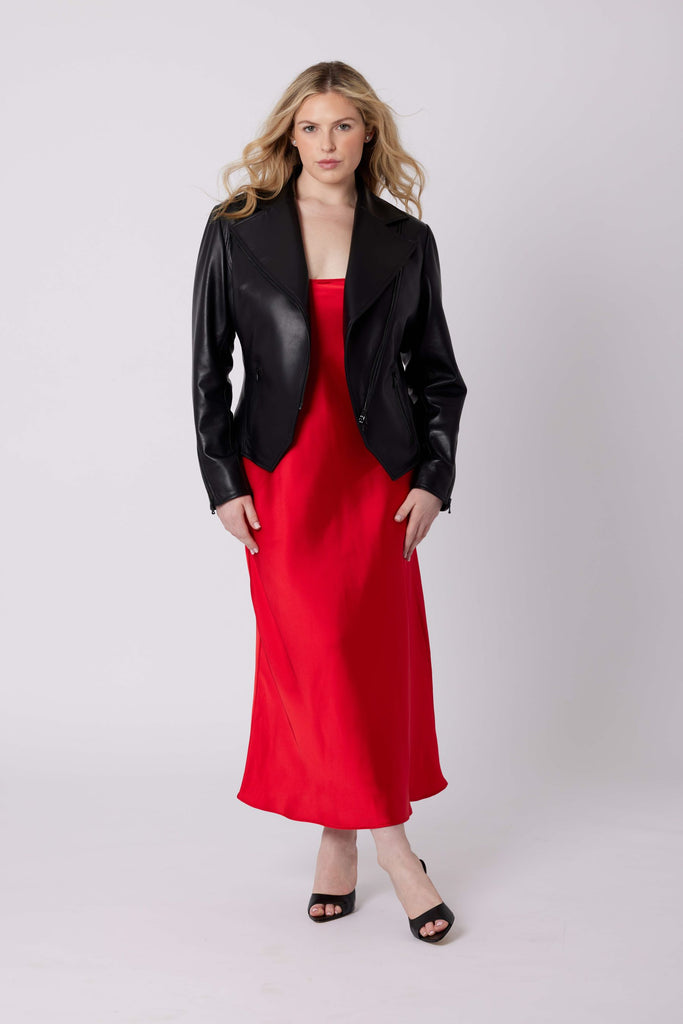Made of soft nappa leather and produced in an artisanal factory known for its designer clientele, this moto pairs perfectly with jeans and trousers for a chic and casual vibe, while also adding a stylish touch when layered over a dress. Whether you're running errands or hitting the town, the Contoured Moto Jacket makes a statement with its sleek silhouette and undeniable edge.